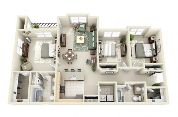 本文將展示許多種可視化的三居室布局,幫助你更好的運用時尚家具和獨特的布局。