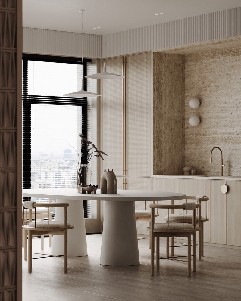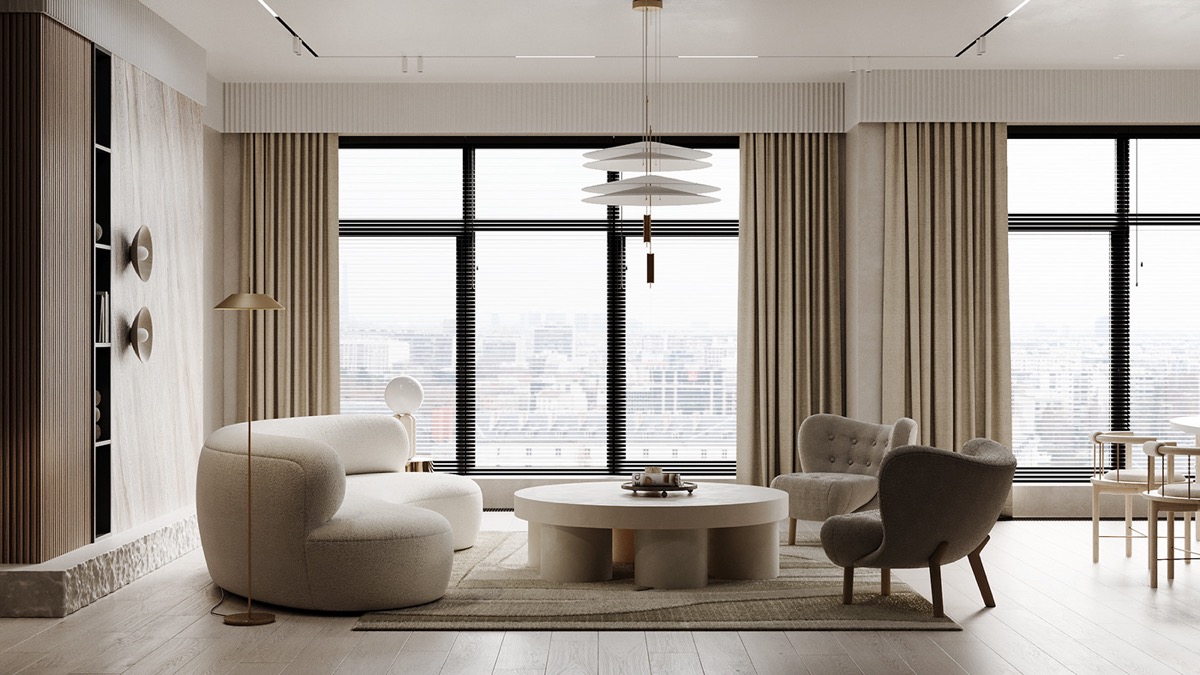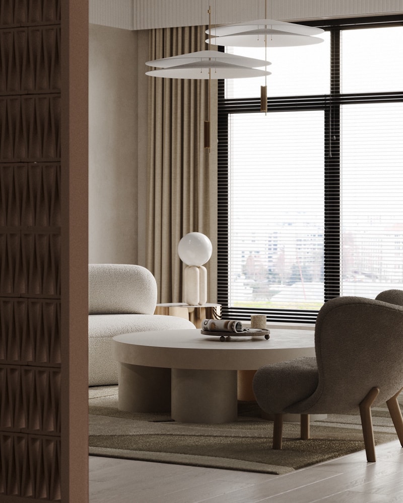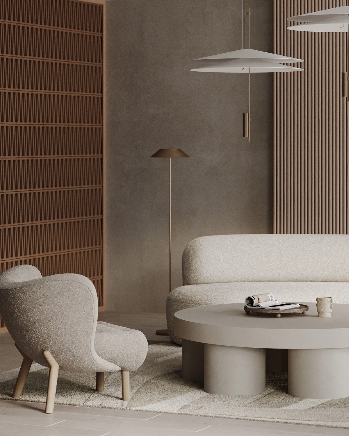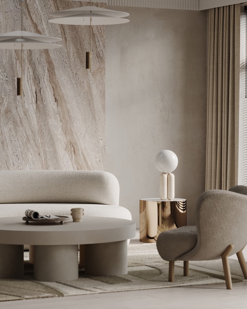 舒適柔和的曲線和溫暖的單色色調(diào)構(gòu)成了這兩個(gè)寧靜的現(xiàn)代內(nèi)飾。觸覺曲線構(gòu)成了主要家具,焦點(diǎn)燈具為日常生活帶來的一切營造出舒緩和寧靜的環(huán)境。我們的第一個(gè)特色家居設(shè)計(jì)帶我們踏上大理石、堅(jiān)固的石頭和木板條紋理、簡單的自然色調(diào)和別致的設(shè)計(jì)師風(fēng)格的旅程。我們的第二故鄉(xiāng)之旅是一個(gè)優(yōu)雅寬敞的現(xiàn)代住宅,真正注重舒適??繅|柔軟的休閑家具、咆哮的現(xiàn)代壁爐、三個(gè)寧靜的臥室設(shè)計(jì)和夢幻般的藝術(shù)家休息室將讓您永遠(yuǎn)不想離開。