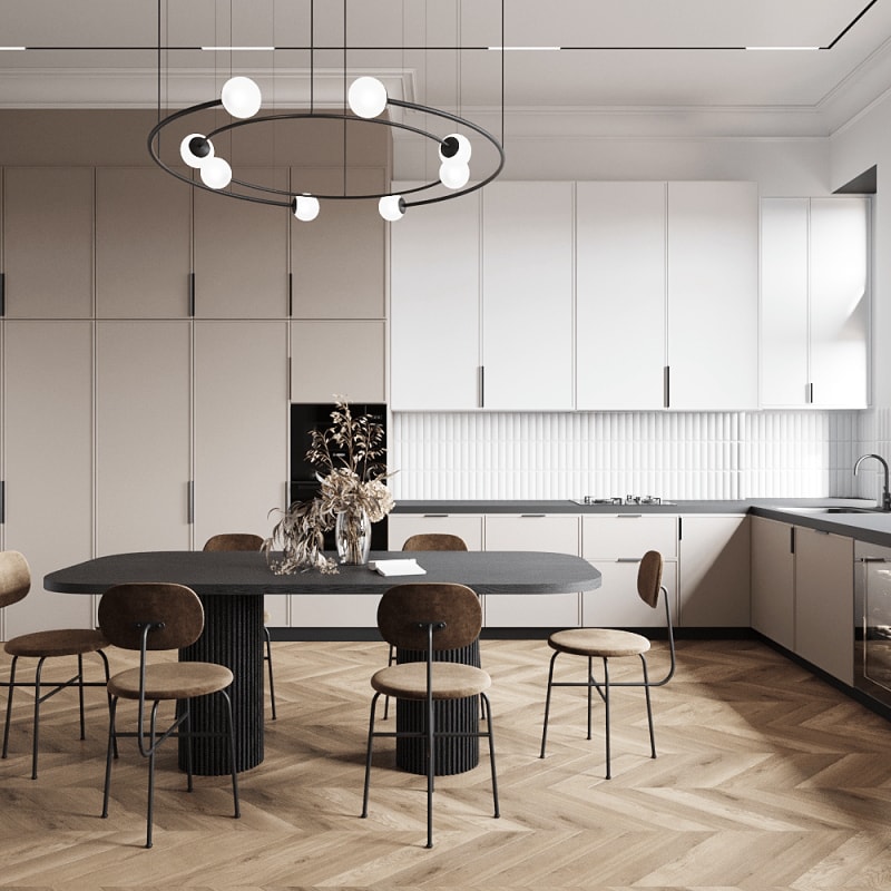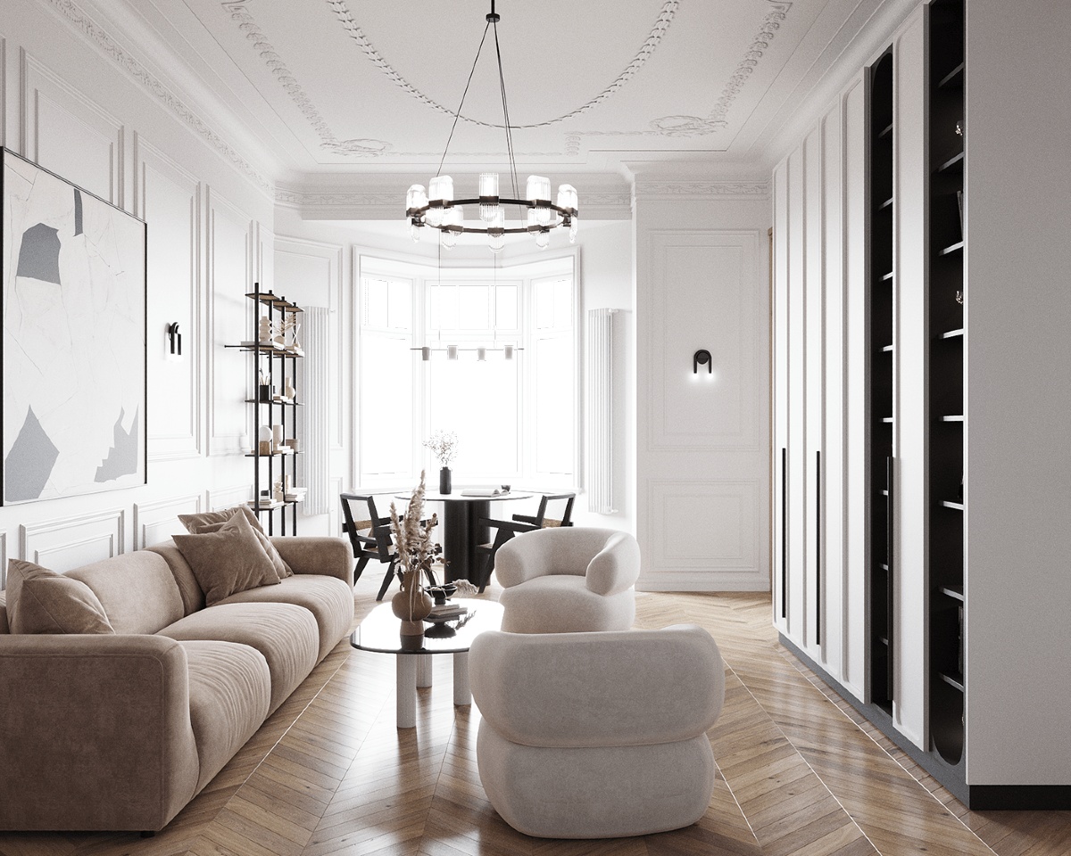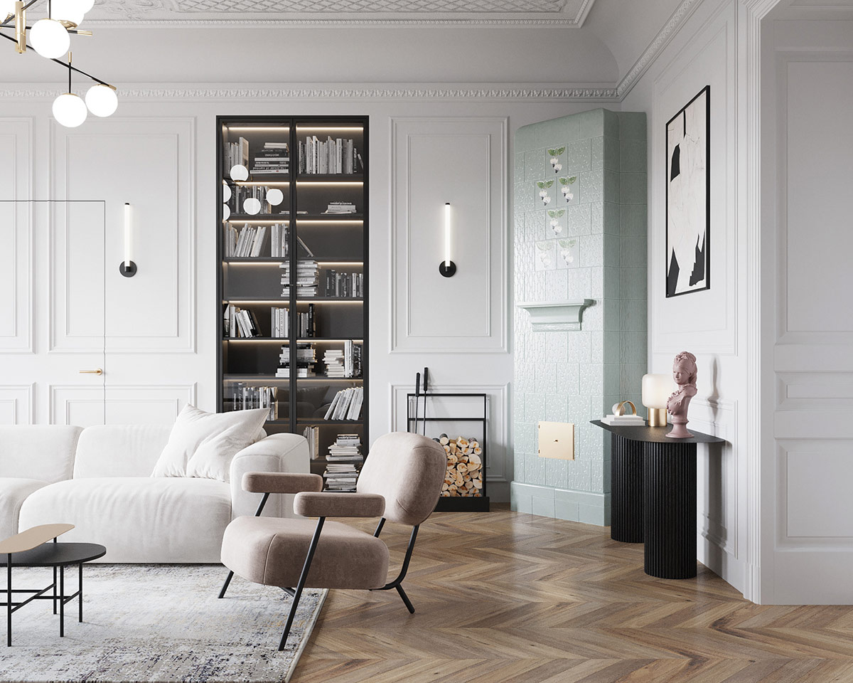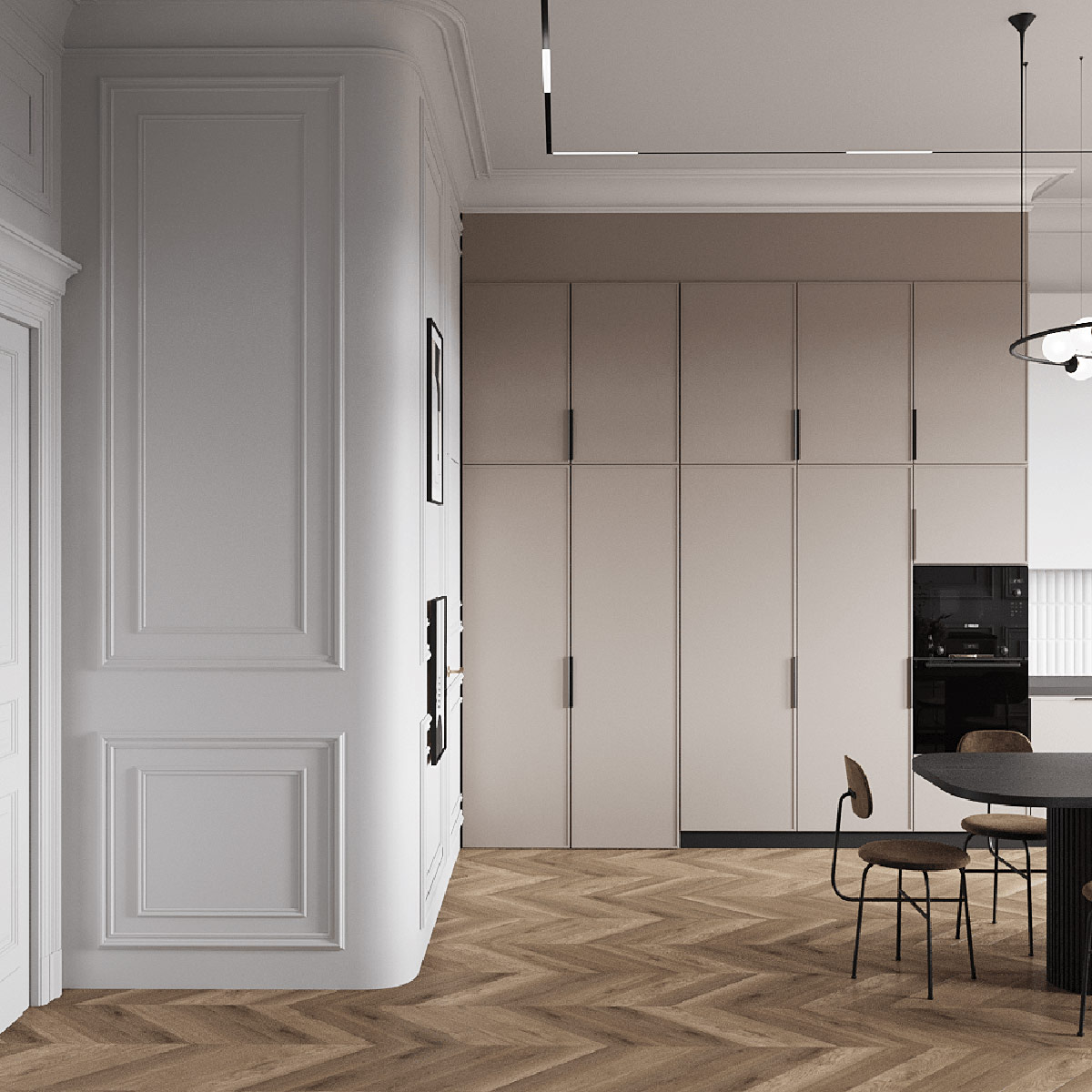 保存完好的歷史遺產(chǎn)為這座精致的公寓帶來(lái)了新古典主義的錯(cuò)綜復(fù)雜,俯瞰莫斯科大劇院,位于俄羅斯圣彼得堡彼得格勒卡區(qū)的中心。由Rindes 設(shè)計(jì),這座優(yōu)雅的住宅擁有原始的皇冠造型和令人印象深刻的高天花板。護(hù)墻板被用來(lái)偽裝室內(nèi)門(mén),獨(dú)特的油漆效果在微妙的鼠尾草綠色和粉紅色調(diào)色板下扭曲了空間感知。清新的現(xiàn)代家具物品和現(xiàn)代裝飾配件與更多裝飾元素形成干凈的并置,而引人注目的現(xiàn)代燈具則增添了煥然一新的宏偉感。家庭參觀結(jié)束時(shí)包括平面圖。