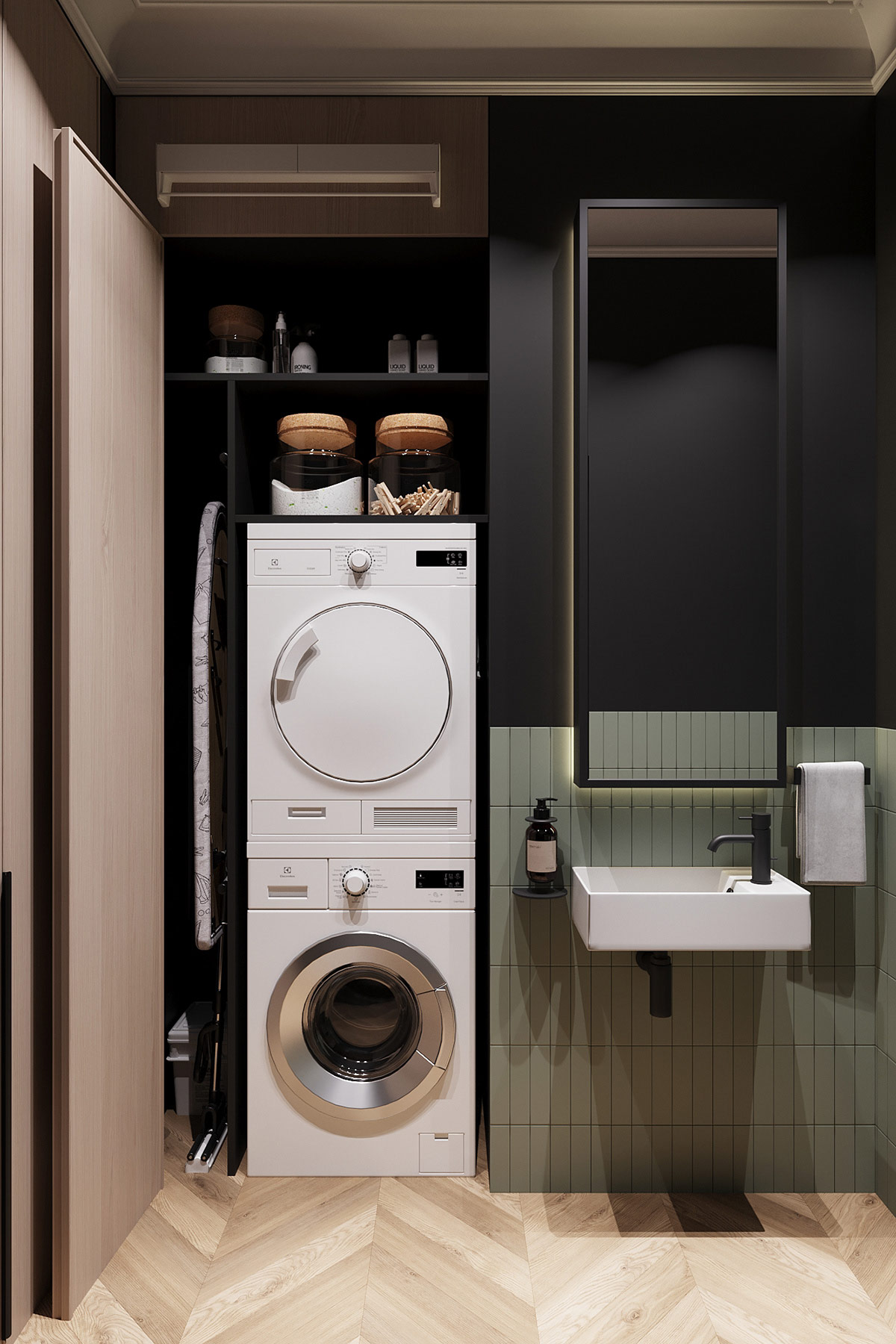 在這里,我們發(fā)現(xiàn)小化妝間實(shí)際上兼作洗衣房。