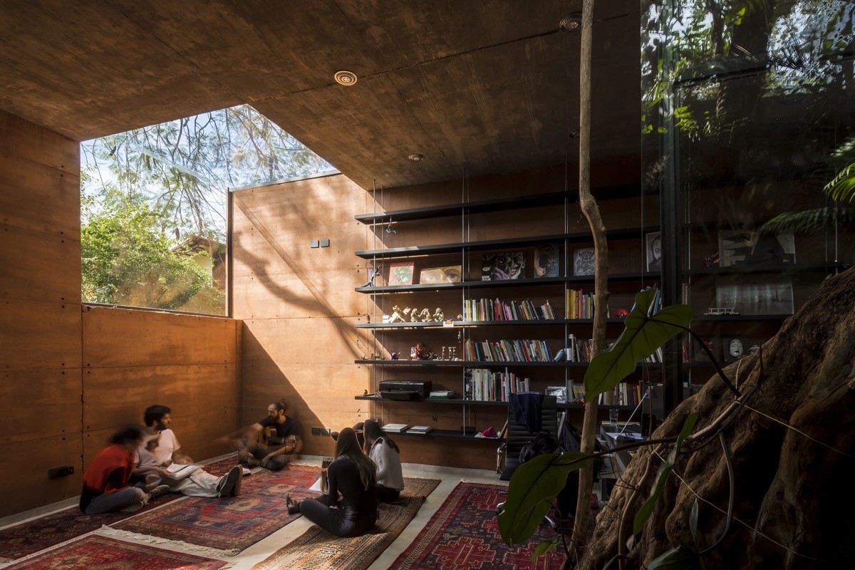 感覺就像你在搖曳的樹枝下閱讀,家里的圖書館有自己的天窗。