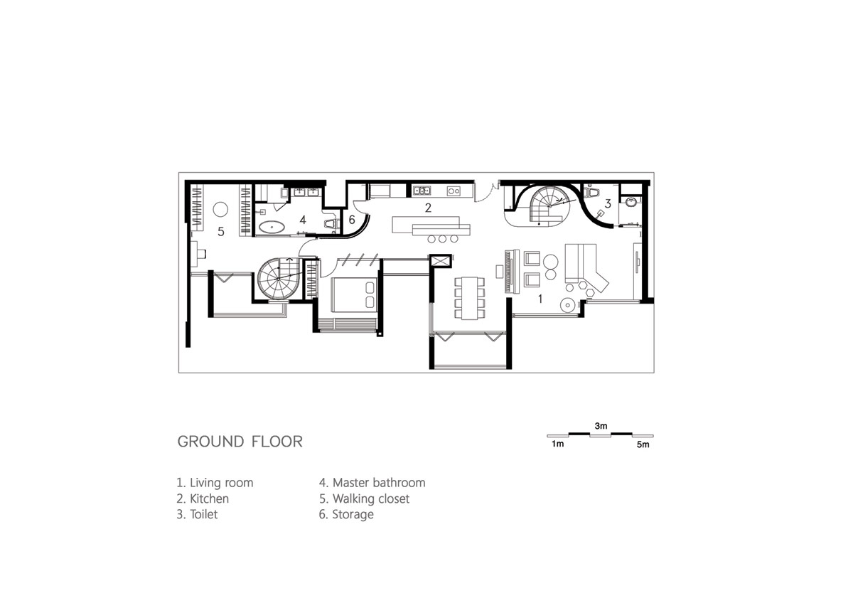 螺旋樓梯通向屋頂。了解更多關(guān)于旋轉(zhuǎn)樓梯的設(shè)計,請點(diǎn)擊這里。