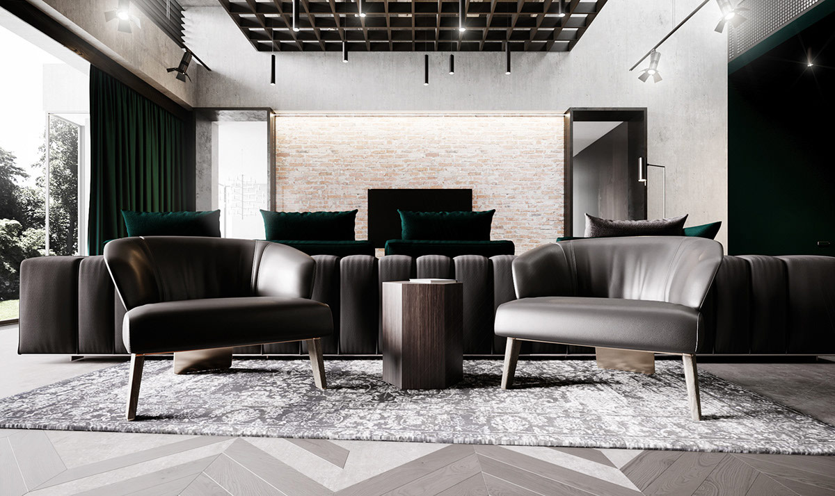 最后,我們來到了一個豪華的工業(yè)內(nèi)飾,帶有豪華的翠綠色口音。