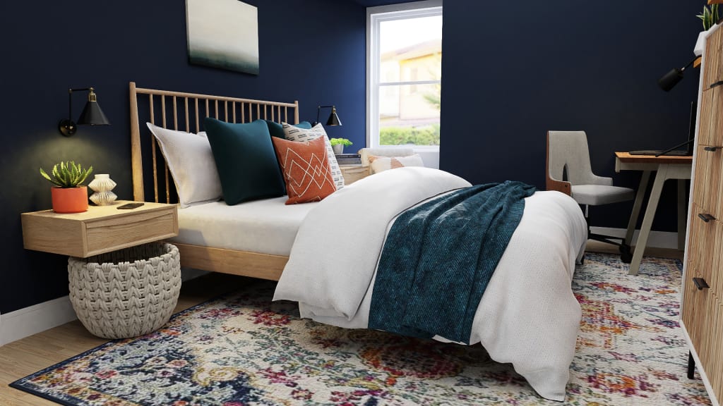 小臥室缺乏存儲空間可能是一個很大的障礙。在墻上安裝擱板可以增加大量額外的存儲空間。您還可以使用這些擱板來設置臥室的主題和裝飾。決定一個調色板,并使用放置在這些架子上的強調件帶來這些顏色的流行元素。天花板下方 12 英寸的墻壁是額外存儲空間的絕佳空間。在大多數情況下,這是任何房間中使用最少的空間。這也是最大化小臥室空間的好方法。您想利用您擁有的每一點空間。