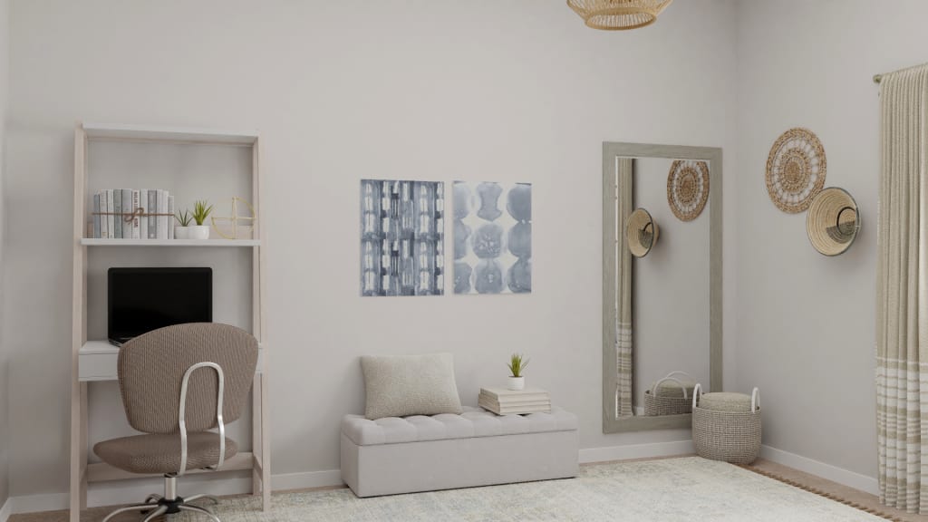 您可以壁掛更輕的家具,例如床頭柜甚至辦公桌。只需拖動一把椅子,瞧!你的臥室里有一個舒適的小工作區(qū)。