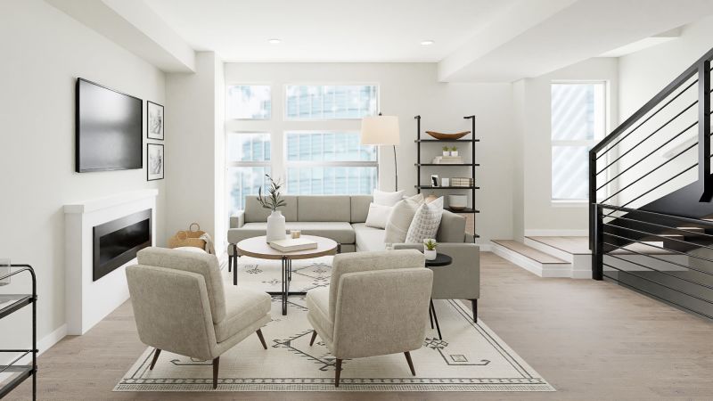 9)帶有舒適休息室的單色現(xiàn)代客廳