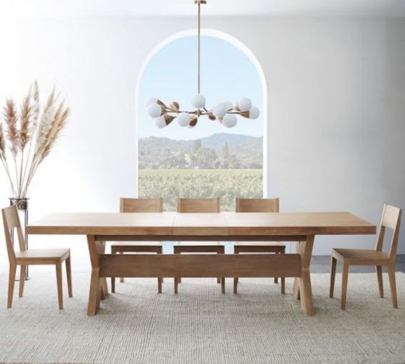 這款由天然竹子制成的餐桌為你的餐廳增添了輕盈和多功能的效果。它可以輕松地在桌子周?chē)??下六個(gè)人,因?yàn)閮蓚?cè)沒(méi)有腿妨礙。它的圓角會(huì)自動(dòng)保護(hù)兒童安全,因?yàn)闆](méi)有鋒利的邊緣會(huì)在你家附近奔跑時(shí)被證明是危險(xiǎn)的。我們喜歡它的中性色調(diào)和增強(qiáng)斯堪的納維亞風(fēng)格的通風(fēng)設(shè)計(jì) 。