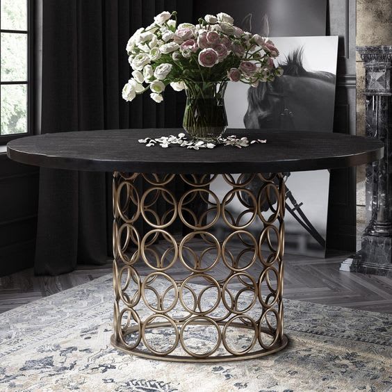 時(shí)尚的餐桌為你的用餐空間增添優(yōu)雅氣息。這款六人座手工制作的餐桌是一款迷人的作品,采用優(yōu)雅的黃銅底座和精致的黑色桌面。沉迷于為你的家打造的這件宣言作品。這是你不會(huì)后悔的一次性投資!