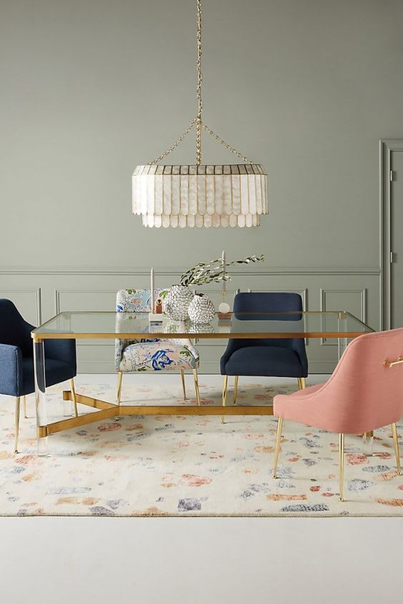 這張桌子有一個(gè)人造大理石臺(tái)面(但你永遠(yuǎn)無(wú)法分辨)和一個(gè)金色的框架,可以很好地襯托顏色。它一定會(huì)讓你的餐廳變得明亮!